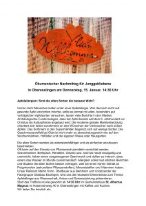 Ökumenischer Nachmittag für Junggebliebene im Gemeindezentrum St. Albertus Termin Details Datum: 15. Januar 2026 14:30 – 16:30 Veranstaltungsort: Gemeindezentrum St. Albertus Anschrift: Hasenrainweg 40 PLZ, Ort: 73730, Esslingen Bundesland: Baden Württemberg