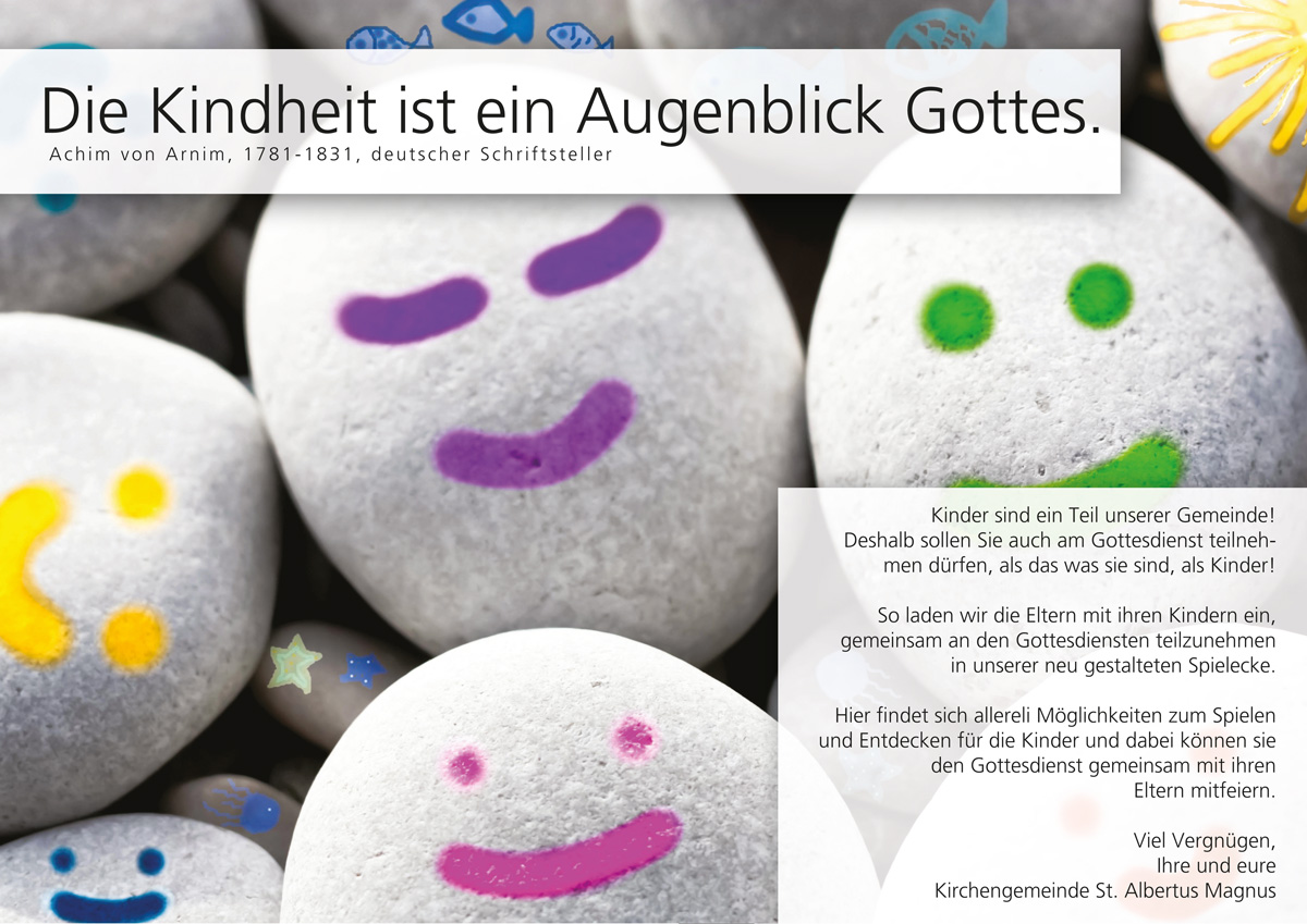 Wir hoffen damit Ihnen den Besuch der Gottesdienste zu erleichtern, und Ihren Kindern einen Ort des Wohlfühlens zu ermöglichen.